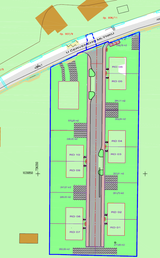 Praha Čakovice ulice U Červeného Mlýnku.