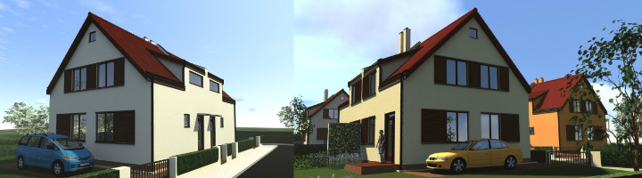 Celkový pohled na lokalitu nízkoenergetických a pasivních rodinných domů v Praze Čakovice.